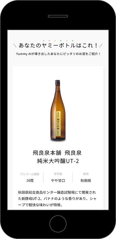 タイプ判定だけでは選びにくい、あなたの味覚にぴったりの一本を発見!将来的にはタイプ判定と重ならない「意外な好み」も発見します。